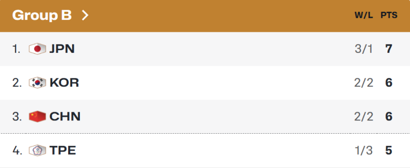 目前,世预赛最新积分榜:日本3胜1负居首,中国2胜2负位列第三。