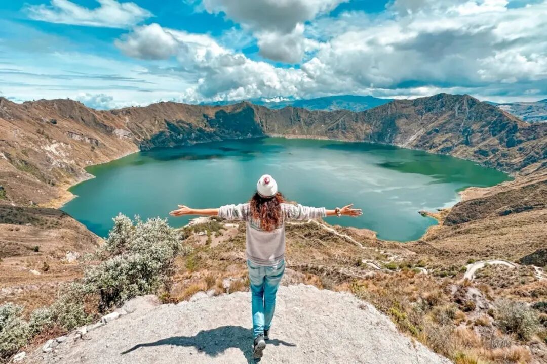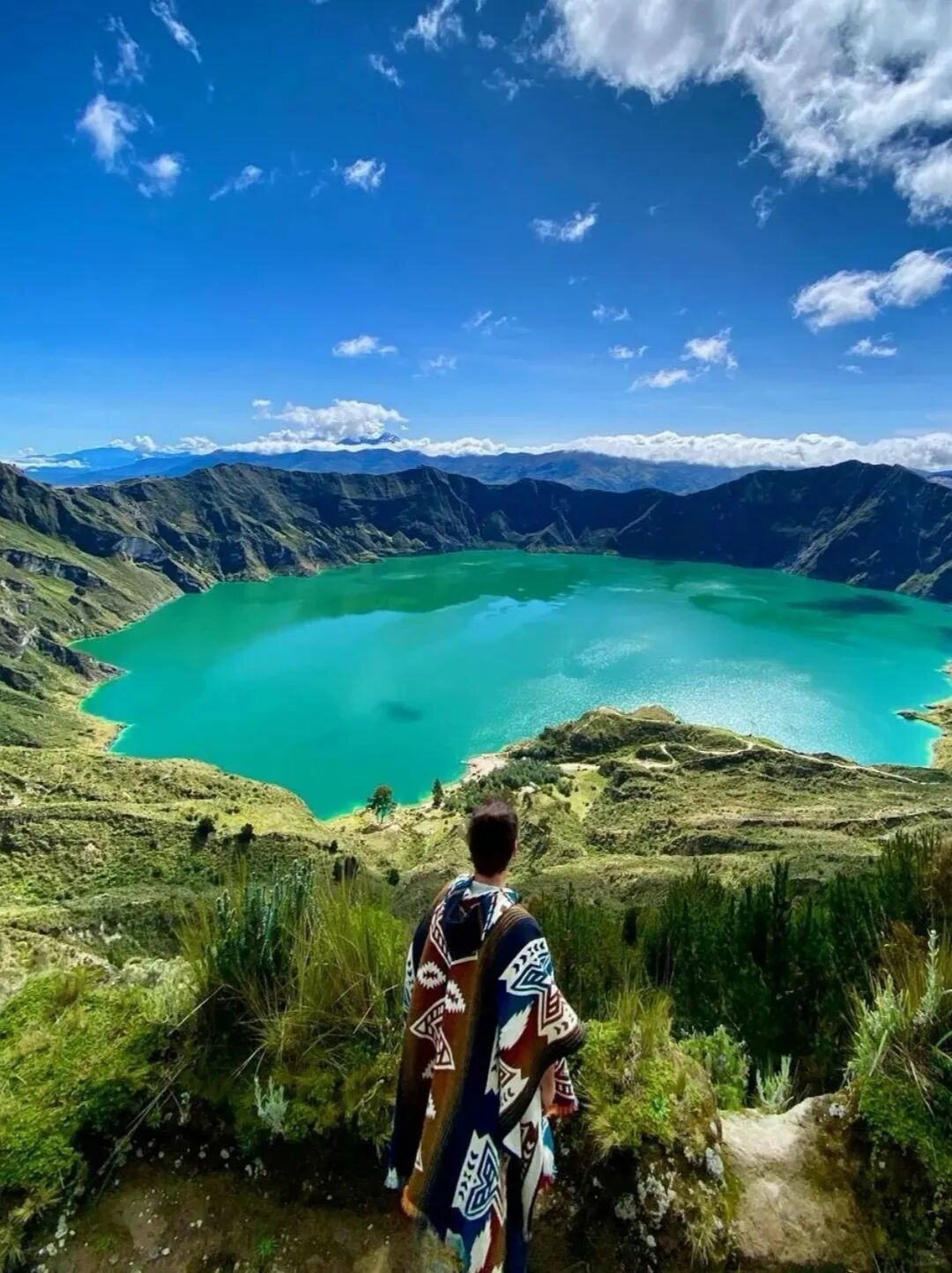 近郊的基洛托阿火山湖(Laguna de Quilotoa),在光线的照射下宛如一枚嵌于火山口的翡翠绿宝石,是火山徒步的好去处。