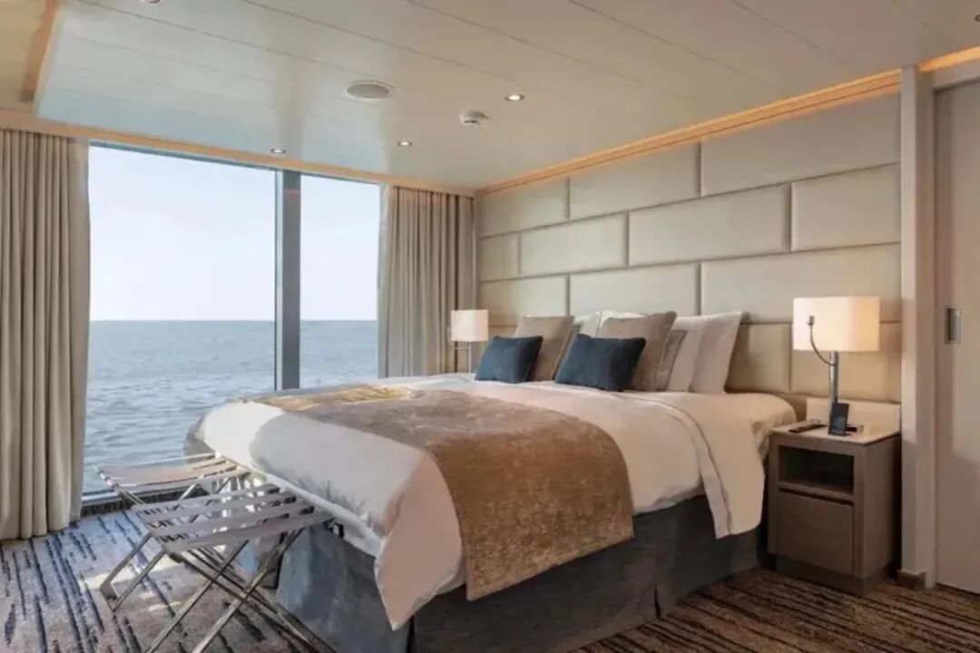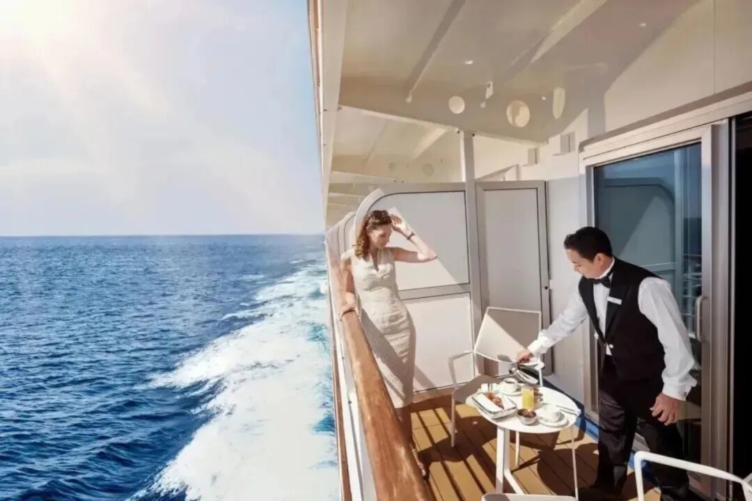 所有套房都配备了私人阳台与专属管家,拥有整个群岛最高的乘客服务比1:1.16,更拥有完备的健身中心、美容水疗馆和探索者休息室,提供最舒适的奢华享受。
