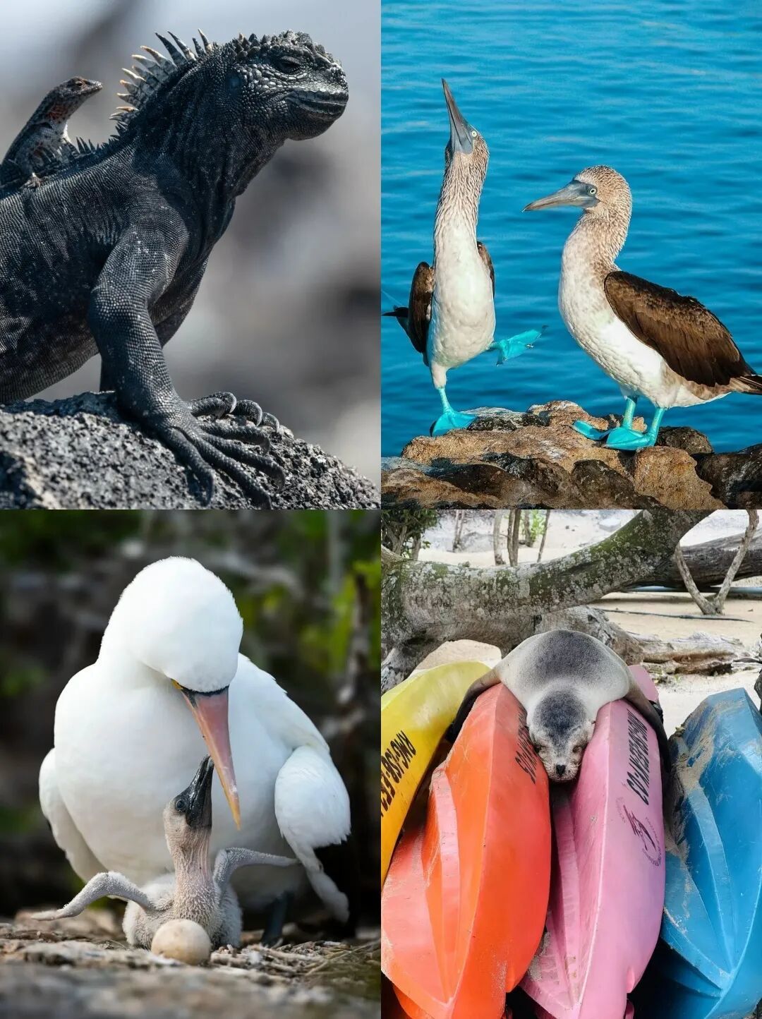 肌肉发达的海鬣蜥大口吞咽海藻,穿着小蓝靴子的蓝脚鲣鸟跳着求偶舞,成群结队的海狮任性地晒着太阳;