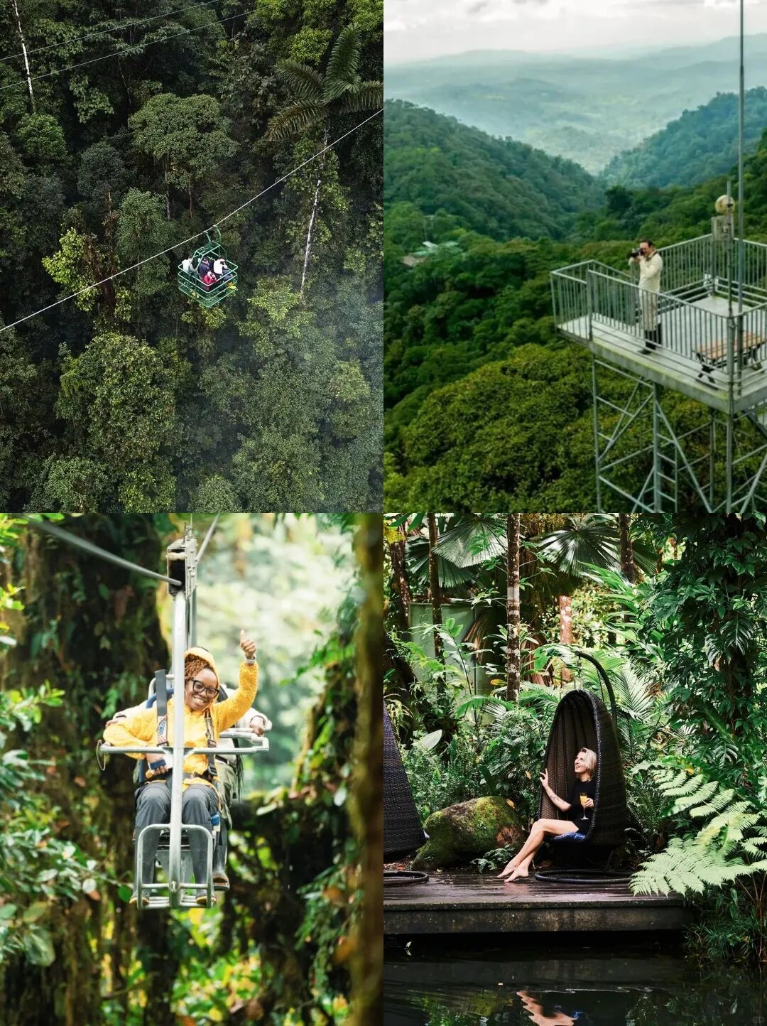 下榻 Mashpi Lodge 酒店,还能解锁专属隐藏玩法:在200米的高空骑双人脚踏车 Sky Bike;登上162级台阶的高塔,感受云雾森林的垂直生态;还有可搭载4人的空中巴士缆车,提供懒人选项。